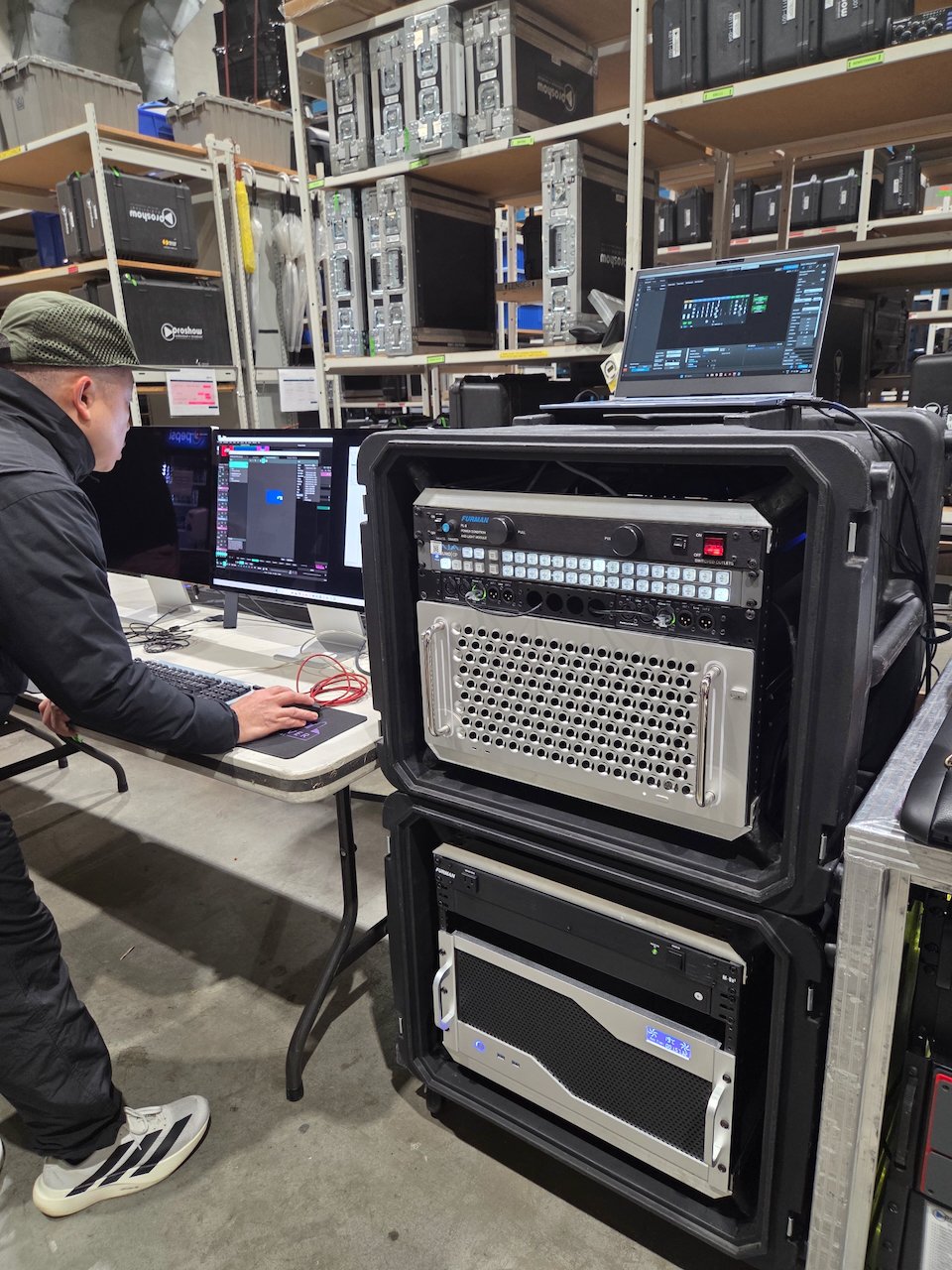 Powerful Mac Pro and Windows media servers running Resolume, Millumin and TouchDesigner software.